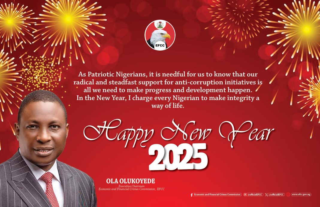 Olukoyede assures that the EFCC will surpass its 2024 record, maintaining that officers of the Commission are unrelenting in breaking strongholds of corrupt practices across the country. “Our work is more than a vocation but a patriotic calling.  We know this and will always offer our best to move the nation forward. 2025 will be another year of bringing towers of corruption down. Our focus is set and our commitment is total”, he said.