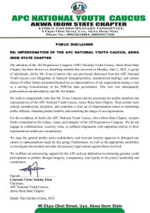 RE: IMPERSONATION OF THE APC NATIONAL YOUTH CAUCUS, AKWA IBOM STATE CHAPTER