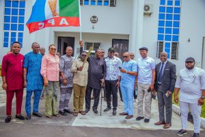 The high point of the event included a vote of confidence passed on President Bola Ahmed Tinubu, Senate President, Distinguished Senator Godswill Akpabio, and Governor Umo Eno. The motion was moved by Dr. Kingsley Uwa and seconded by Rt. Hon. Uduot Jack. The ceremony concluded with the hoisting of the APC flag at the Chairman’s office.