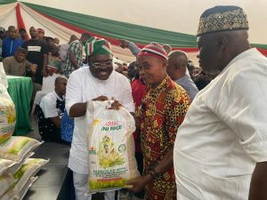 Hon Umah who unveiled and distributed bags of branded Arise INI Rice, said the local rice project initiative was in line with the Arise Agenda of the Governor.