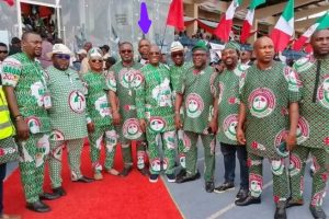 One of the sacked Aides, Felix Ekuri (indicated with arrow) caught via this group photograph attending the just-concluded convention of the People’s Democratic Party (PDP) held in Ibadan, Oyo State.