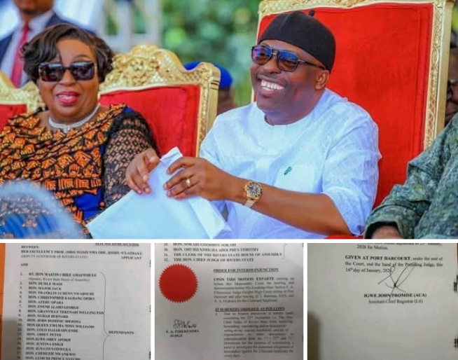Rivers State High Court has restrained the Chief Judge of Rivers State, Honourable Justice Chibuzor Simeon Amadi, from receiving any impeachment notice from the Speaker of the Rivers State House of Assembly, the Clerk, and the 29 State Assembly members against the State governor; Sir Sim Fubara and his deputy, Prof (Mrs.) Ngozi Nma Odu.