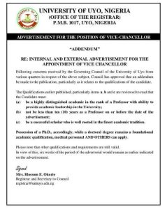 The now-reversed version of the advert had introduced highly restrictive qualifications, particularly in items (a), (b), and (c), raising eyebrows among academics, alumni, and university stakeholders. The move was seen by many as an audacious attempt to manipulate succession and entrench personal interests in the highest office of the university.
