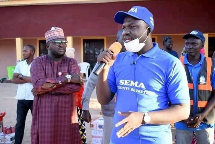 As directed by His Excellency, the distribution took place in Damaturu today, 22nd December, 2020, which was conducted by the State Emergency Management Agency (SEMA), led by its Executive Secretary, Dr. Mohammed Goje”.