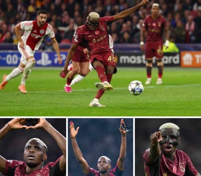 Nigerian star, Victor Osimhen last night, recorded a superlative performance, scoring a stunning hat-trick as Galatasaray defeated Ajax 3–0 in the Champions League.