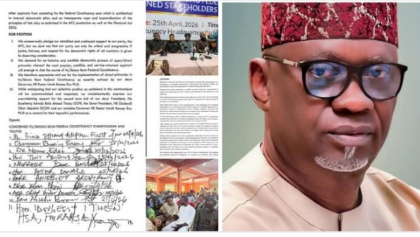 “We therefore state categorically and with no sense of equivocation, that adopting the proposed consensus arrangement as rumoured in Itu/Ibiono Ibom Federal Constituency, will amount to an absurd imposition, a deliberate disqualification of other aspirants from contesting for the federal Constituency seat which is antithetical to internal democratic ethos and an intemperate rape and bastardization of the principles of fair play as enshrined in the APC constitution as well as the Electoral Act 2026 ”