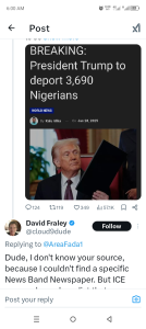 Dude, I don’t know your source, because I couldn’t find a specific News Band Newspaper. But ICE never released any list that even mentioned Nigerians. How would they even know that they’re going to deport 3,960 Nigerian immigrants?