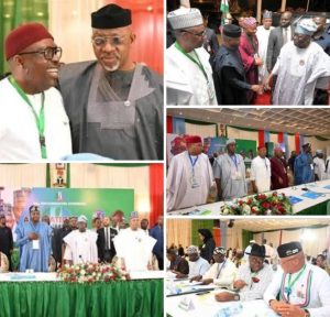 The governor was spotted alongside President Bola Ahmed Tinubu, GCFR, Vice President Kashim Shettima, and several prominent party leaders during the high-level gathering.