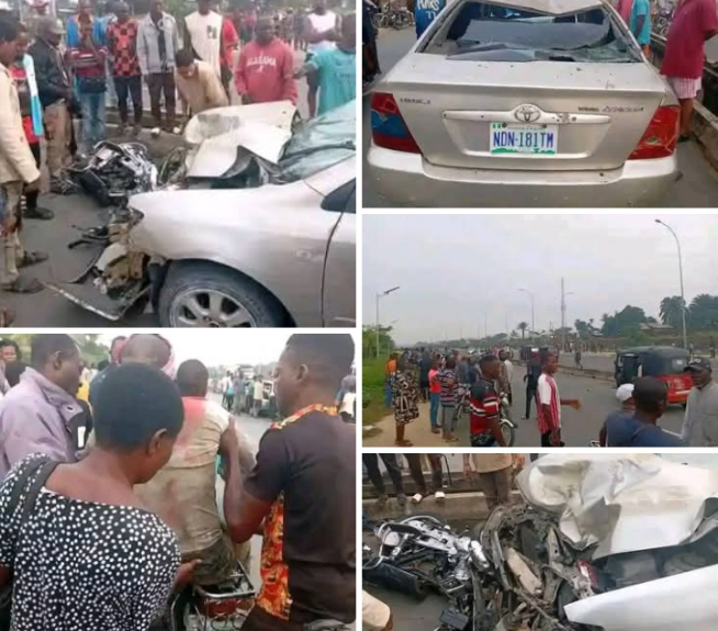 It was further gathered that the Toyota Corolla driver allegedly lost control of the vehicle while traveling from the Oron Road axis towards Aka Road, leading to the collision with the motorbike.