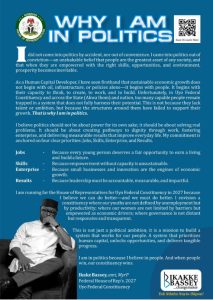 In the statement tagged “Why I am in politics”, the spokesman of the 2023 Labour Party Governorship Campaign Council stressed with proper capacity building, the people Uyo Federal Constituency could harness their potentials.